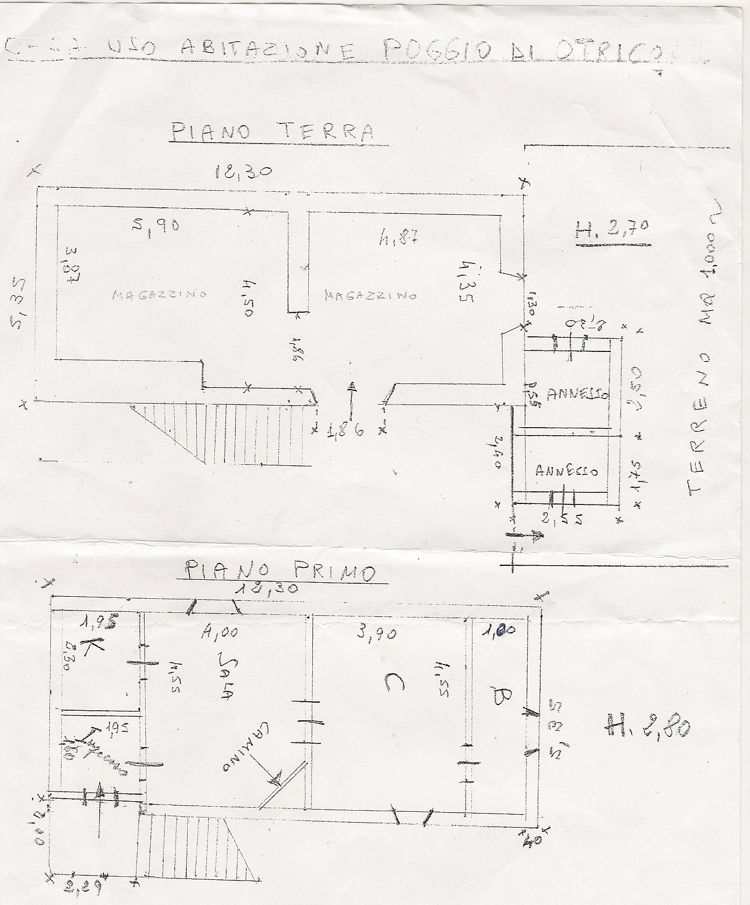 dove ora c’è il magazzino (circa 50 mq) avrei fatto la cucina/taverna/soggiorno con porta d’ingresso sul giardino, una cantinetta, bagno e una scala che porta al piano superiore.